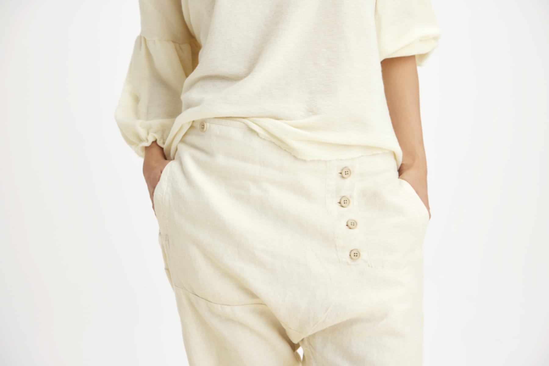 Geggjaðar 100% hör buxur í nokkrum litum. Anda vel og er mjög notalegur í heitu og köldu veðri. Svakalega flott snið og góð hönnun.