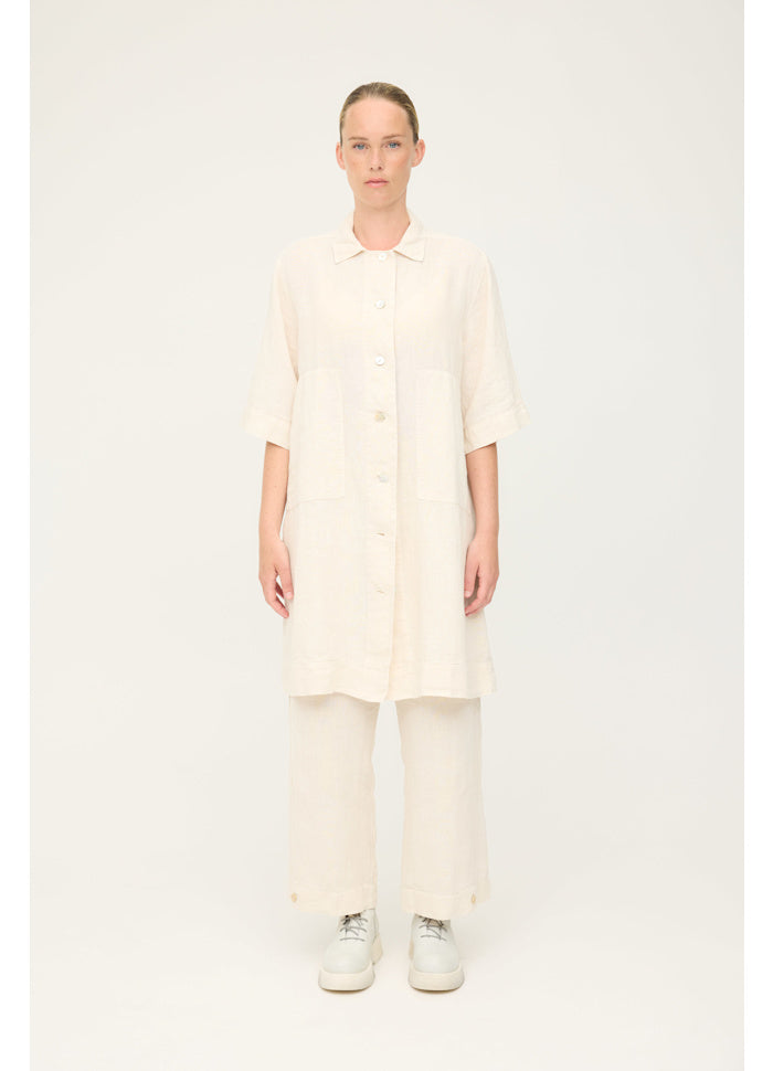 Kjóll í 100% hör. Andar vel og er mjög notalegur í heitu veðri. Ofboðslega fallegt snið. Hönnun sem er mjög klæðileg á lang flestum.