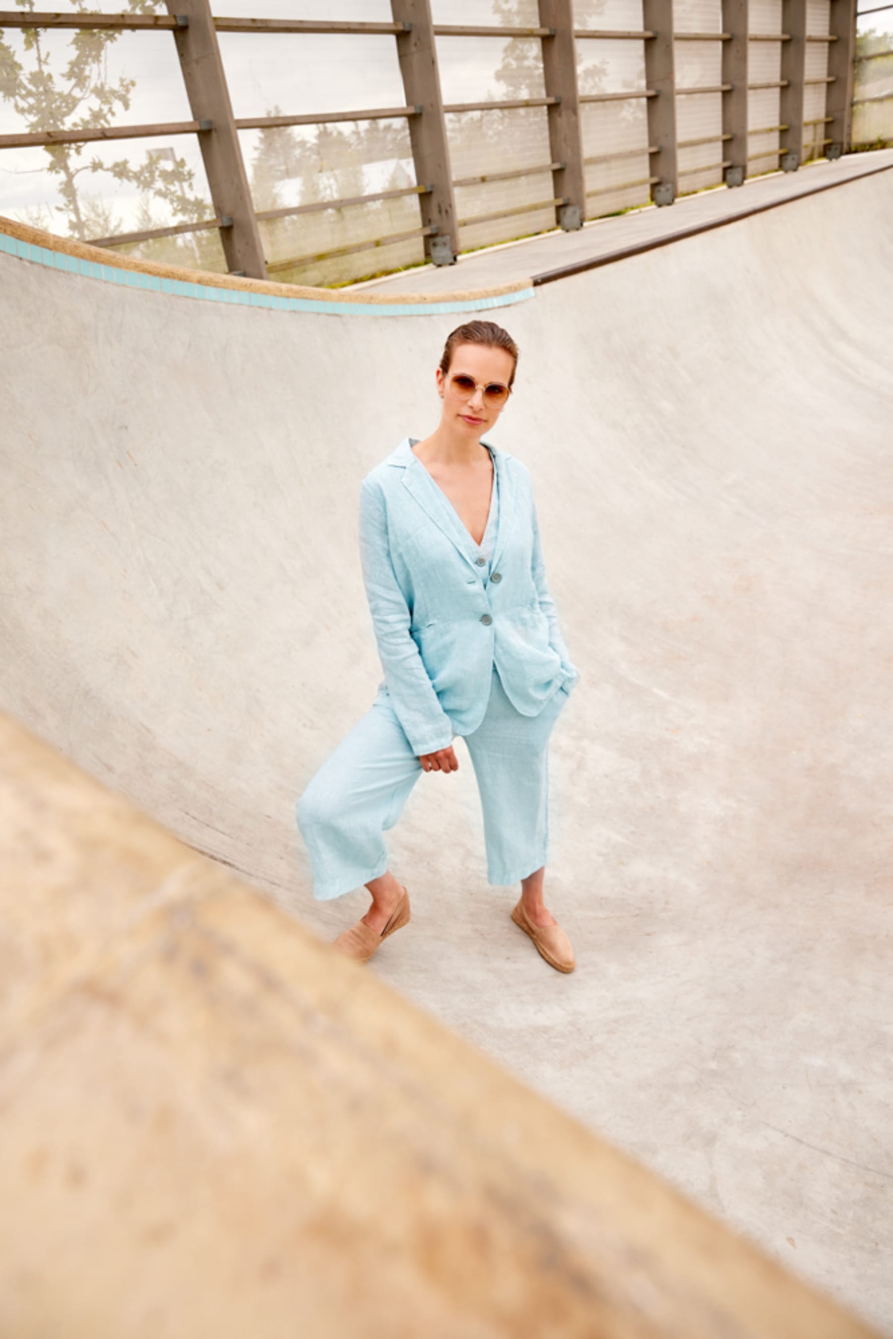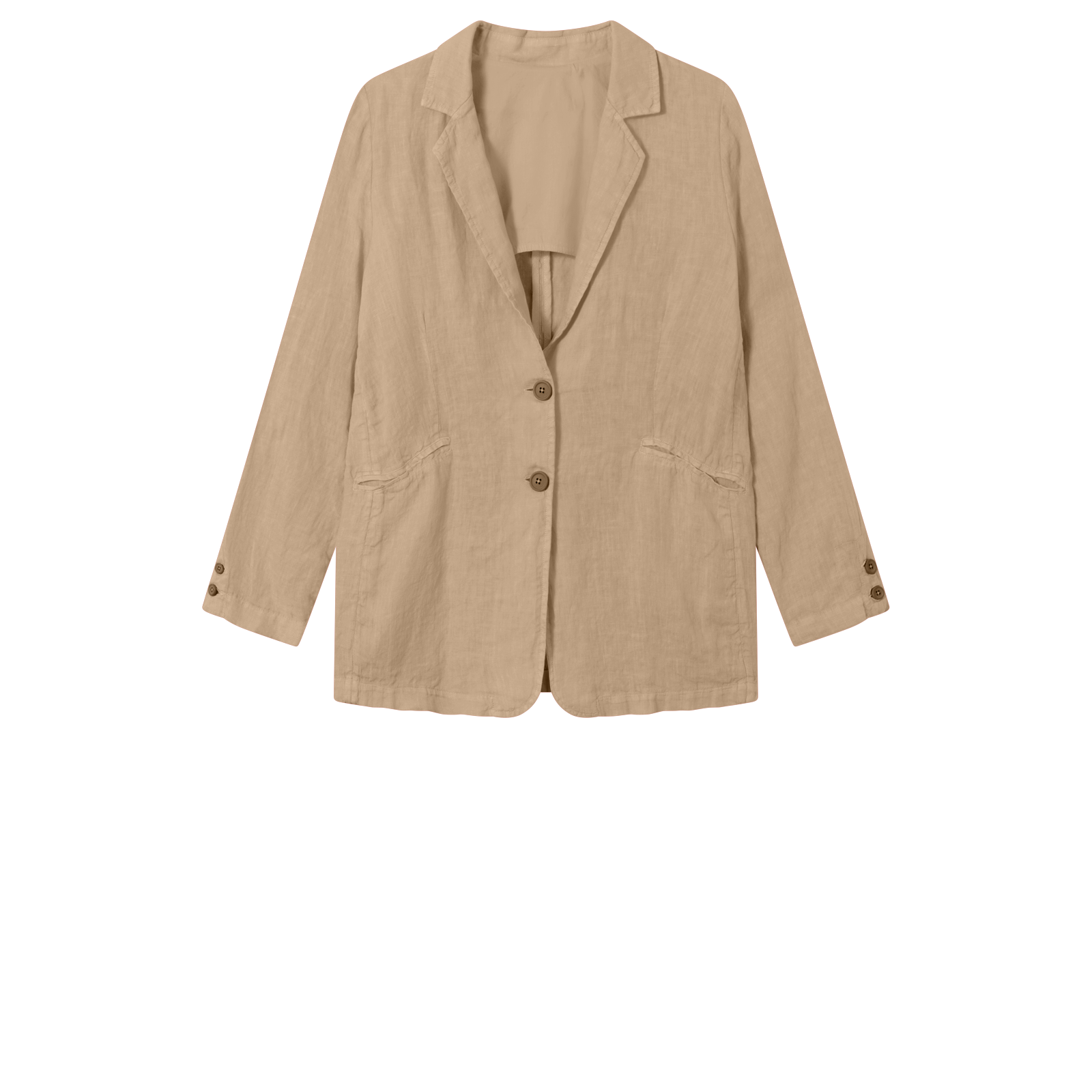 Jakki í 100% hör með vösum að framan. Andar vel og er mjög notaleg í heitu veðri. Hönnun sem passar við kjóla, buxur og pils.
