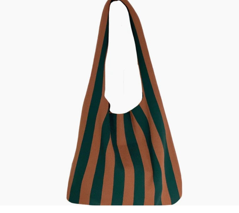 Olivia er stór og rúmgóð og hægt er að bera hana á öxlinni - en ólin er ekki nógu löng til að krossa yfir kroppinn.. Athugið að taskan er framleidd úr prjónaefni og þolir því ekki mjög mikla þyngd.