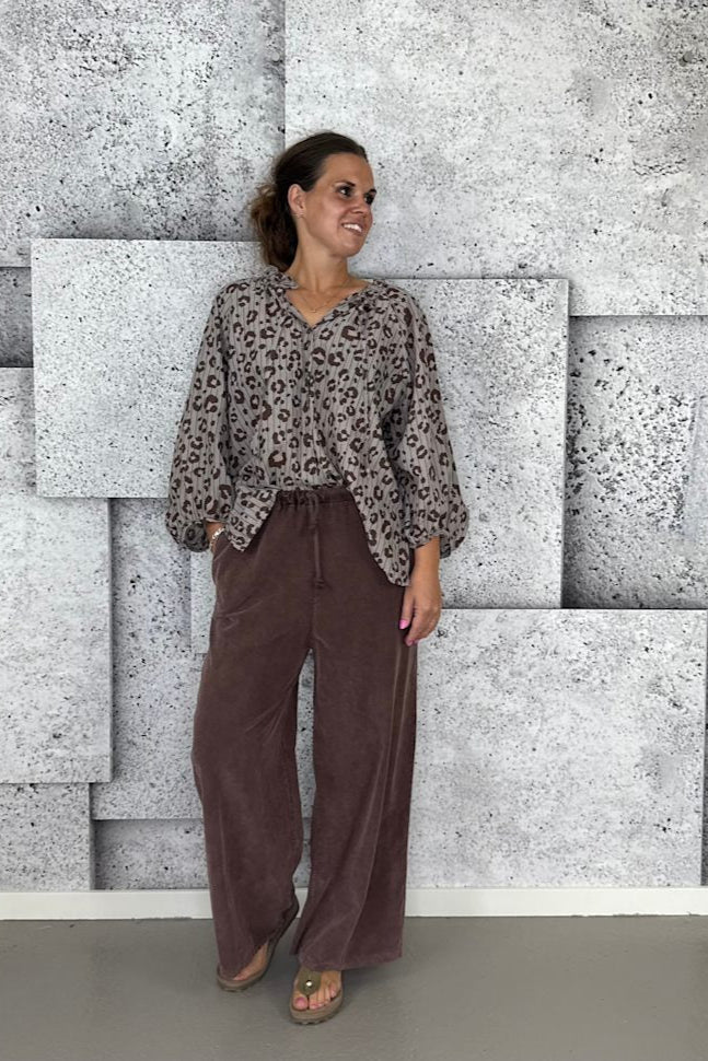 Töff smárifflaðar flauelisbuxur úr mjög mjúku efni. ÞEtta er svokallað barnaflauel,alveg svakalega notalegt og flott.