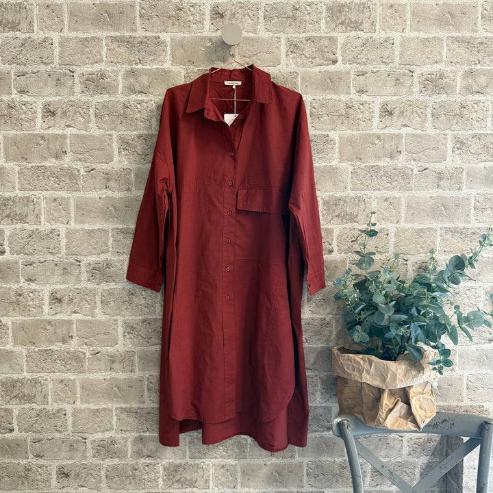 Tokyo síða skyrtan er þunn og létt og alveg sérstaklega falleg í sniðinu. Hún er síðari að aftan, með falli í bakið og svo er góður vasi að framan.