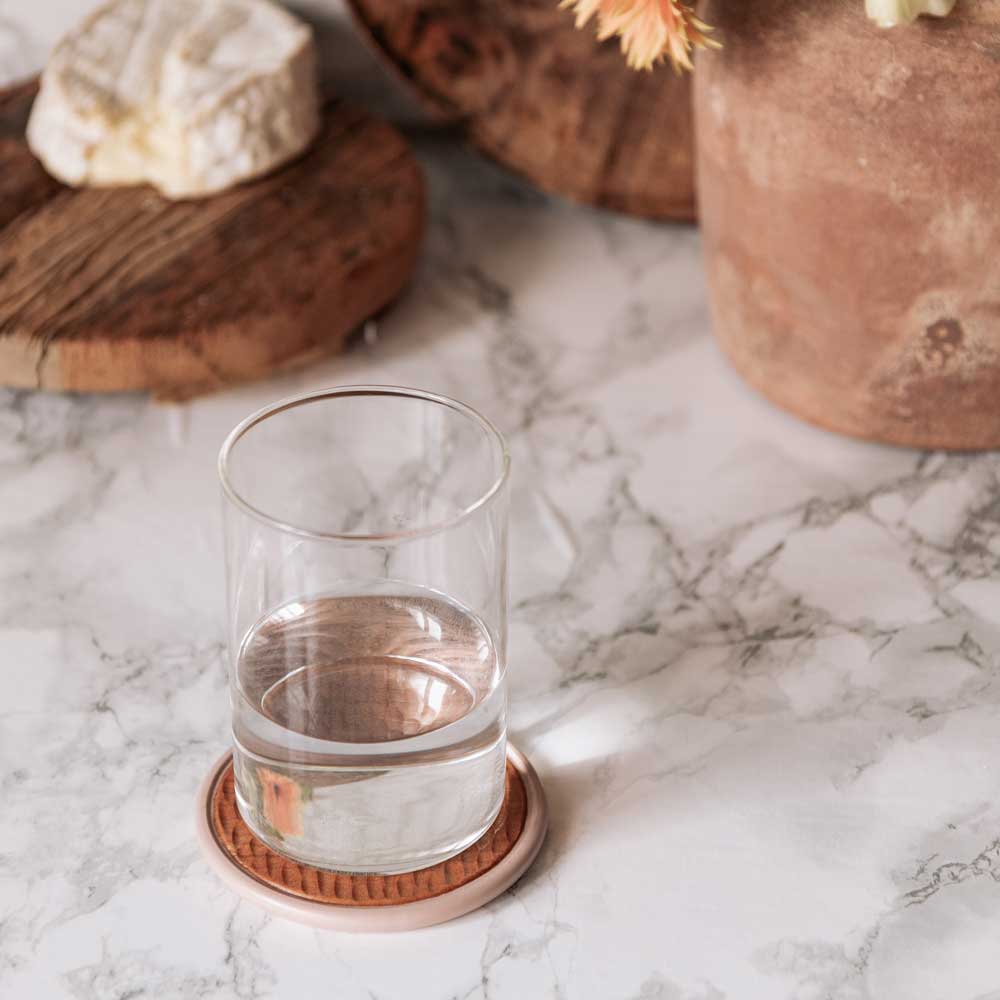 Falleg glasamotta sem færir hlýju í hvaða umhverfi sem er, hvort sem er undir heitan tebolla, vínglas eða vatnsglas. Glæsilegt öldulaga yfirborð - sniðug leið til að vernda borðið og hafa fallegt í leiðinni.