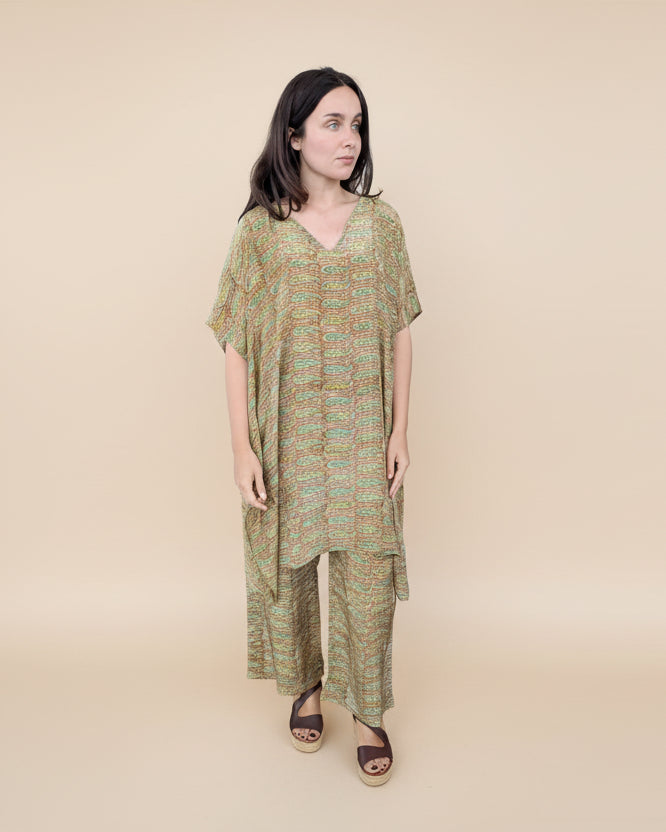 Silkifatnaður úr endurunnum silki saríum Indlands.