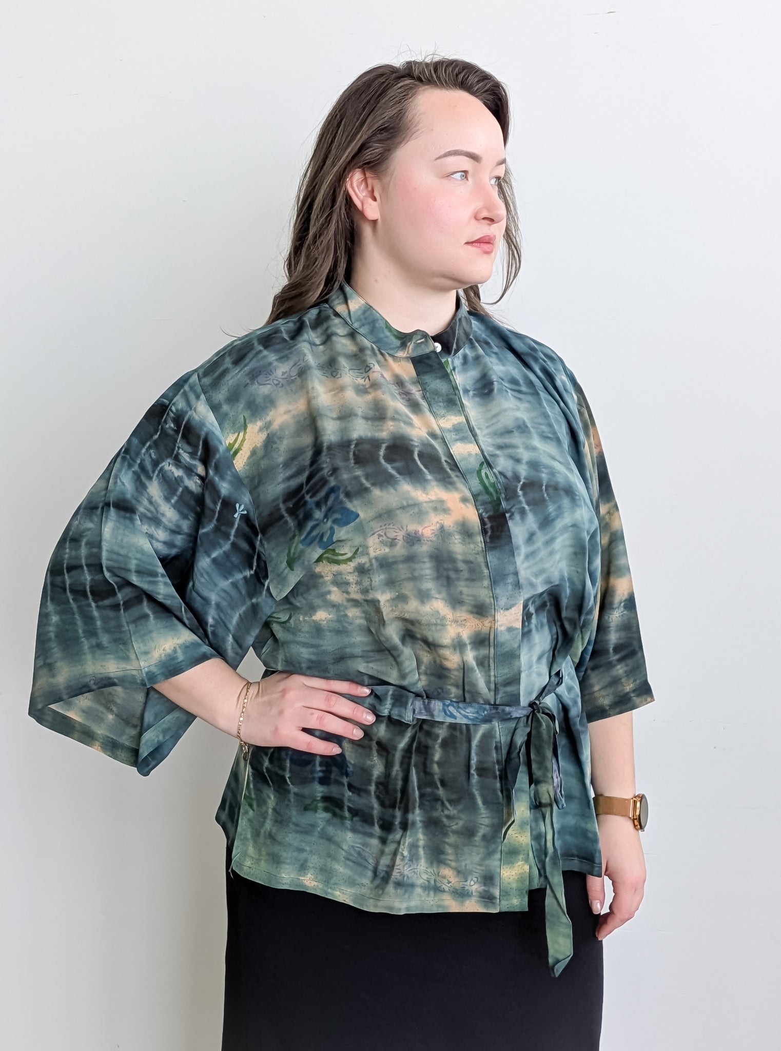 Silkifatnaður úr endurunnum silki saríum Indlands.