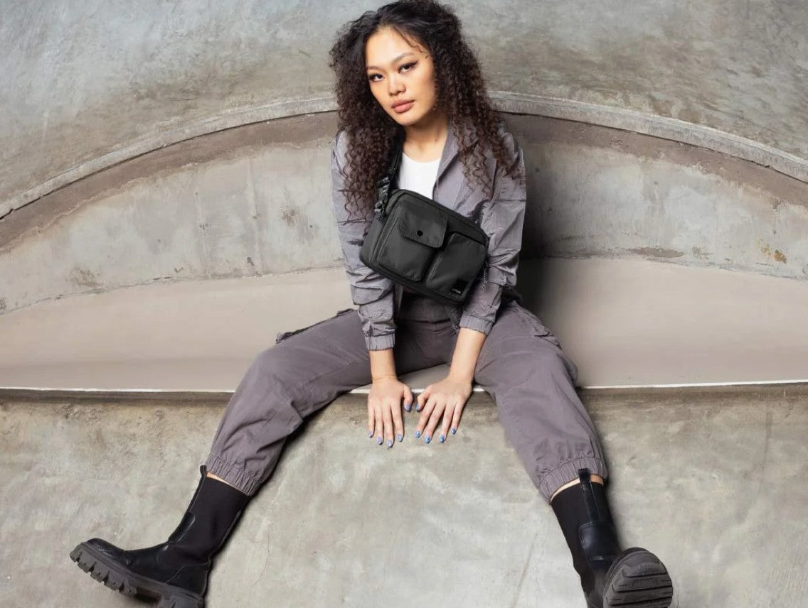 - 100% Recycled Polyester: Lining, Inner Label, Thread, Zipper Tapes (from 2024), Care Label,