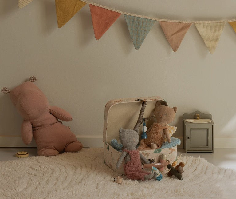 Kettlingur sem passar fullkomlega í litla hönd svo auðvelt er að taka þá með sér í ferðalög. Kemur í mjúkum prjónuðum smekkbuxum og passar á öll Maileg húsgögn í stærðinni mini.