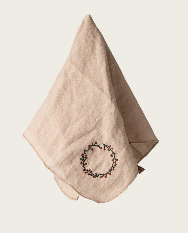 Þessi servíetta er úr mjúku hör og með fallegum útsaumi. Myndskreytingin er handteiknuð af Dorthe Mailil.