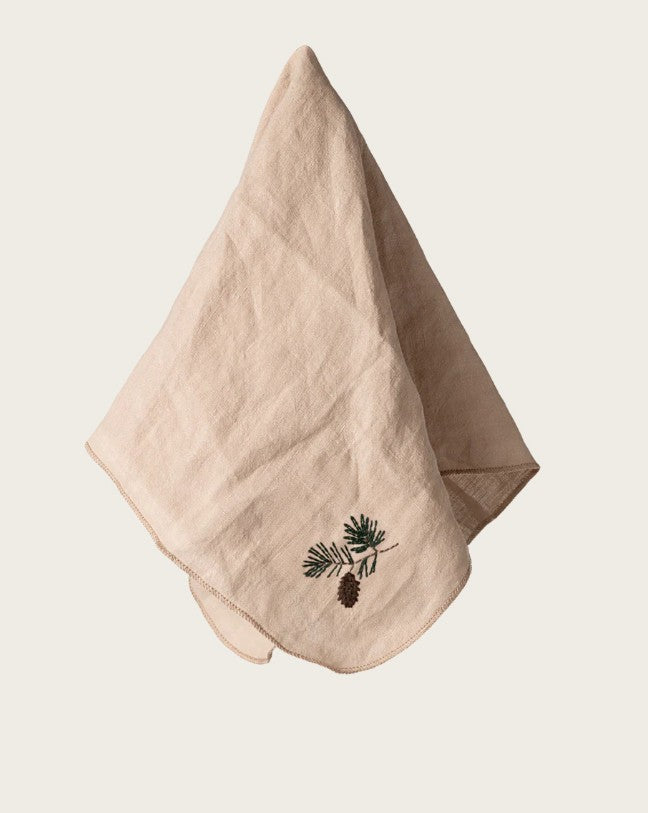 Þessi servíetta er úr mjúku hör og með fallegum útsaumi. Myndskreytingin er handteiknuð af Dorthe Mailil.