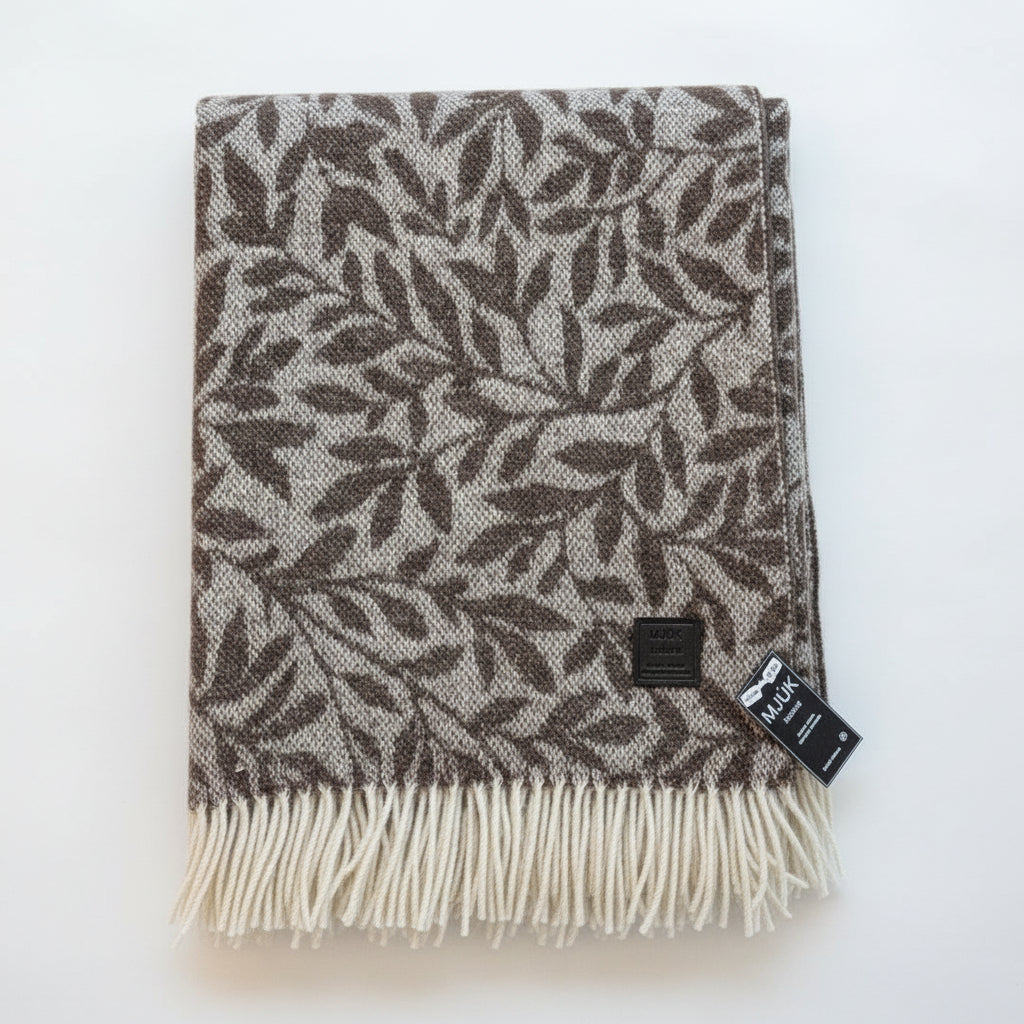 Mjúk Ullarteppi í fallega lauf mynstrinu fæst í mörgum litum . Teppið henta vel inni sem úti á palli eða í sleðaferðinni uppi í fjalli.