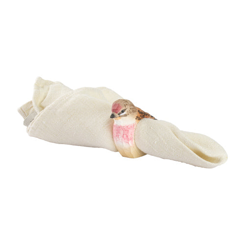 Puntaðu veisluborðið eða fjölskyldukvöldverðinn með úrskornum servíettuhringjum. Hringirnir bæta við smá úr náttúrunni og bæði ungir sem aldnir geta lært að þekkja algengustu fuglana okkar. Fínlega handmálaður Glóbyrstingurinn er með skærrauð brjóst sem er lykileinkenni hans.