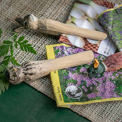 Útskorin klemma úr lindiviði. Uglan er handmáluð með vatnsmálningu.