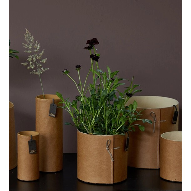The Loop pot has a lovely loop detail on the front and lovely edge finish. The leather is left over leather from teh leather industry in Sri Lanka. The pot is 100% waterproof and ideal for flowers as well as storage of pencils, brushes, herbs etc.Environmentally friendly packaging