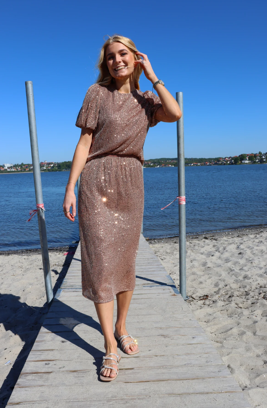Palliettu midi pils. Pallietturnar glitra fallega á dansgólfinu. Einfalt klæðilegt snið sem hægt er að dressa upp & niður.