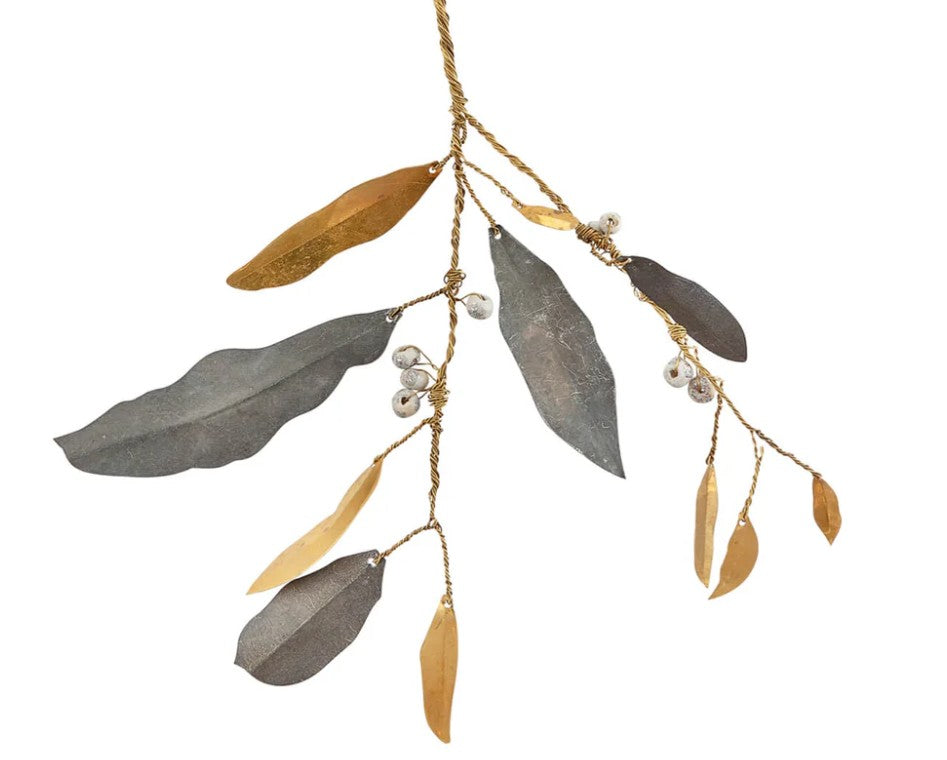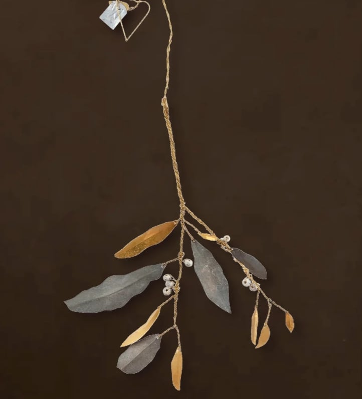 Glæsilegur mistilteinn frá danska hönnuðinum Walther & Co. Snúin messingvír, sink- og messinglauf og beinhvít ber.