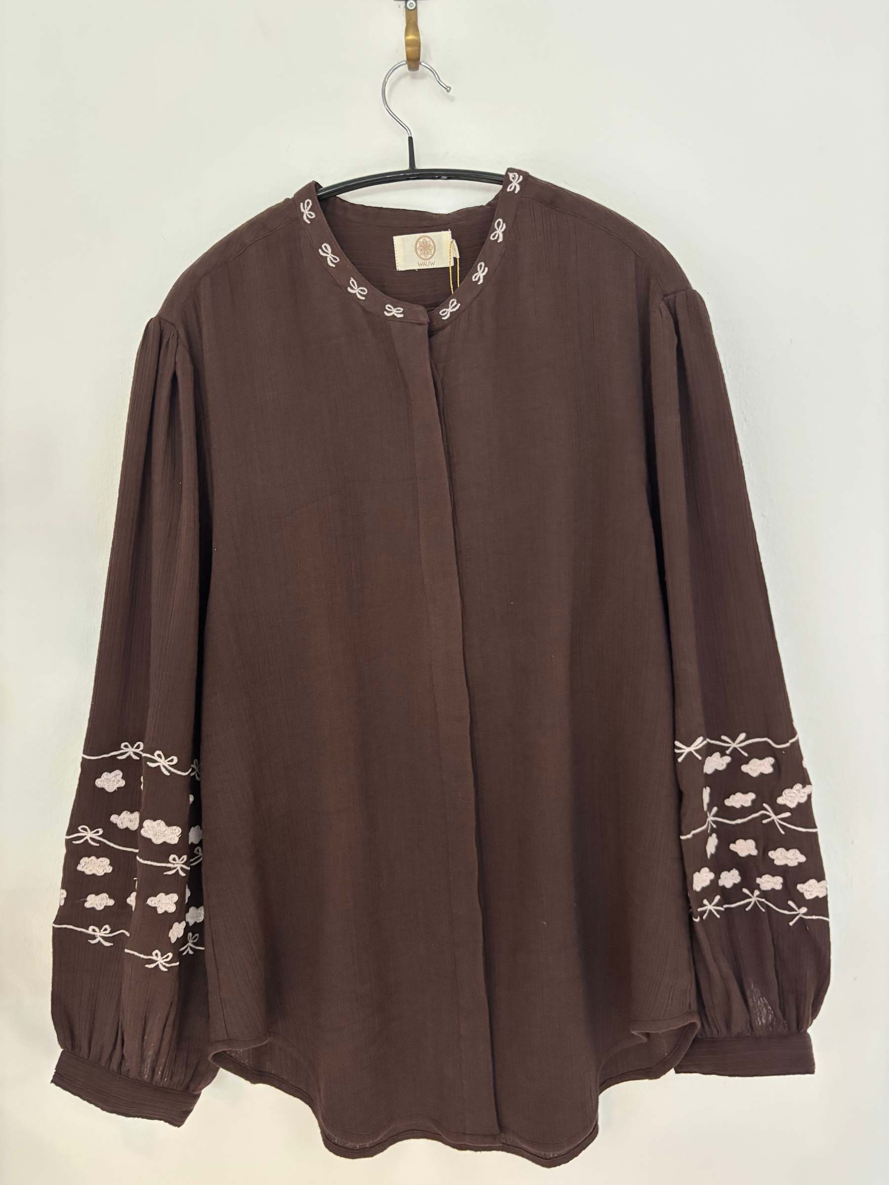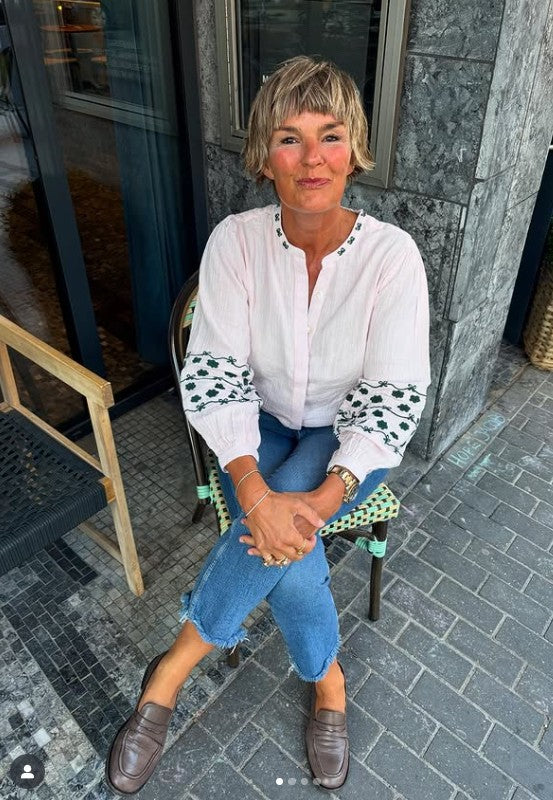 ❃ Ljósbleikur/flöskugrænn útsaumur á kraga og ermum